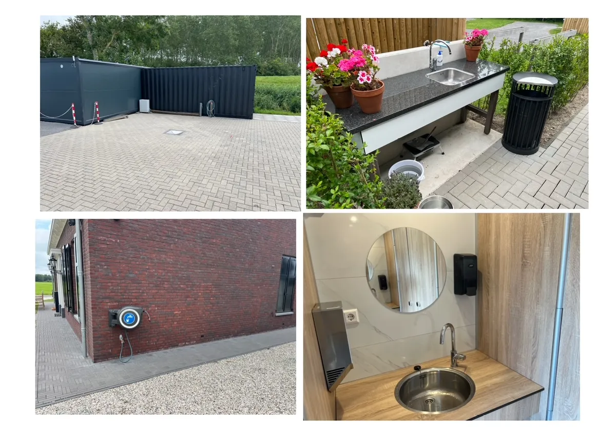 Uw restafval, plastic, papier en glas brengt u graag even naar de milieustraat, rechts van de ingang naar onze camperplaats.